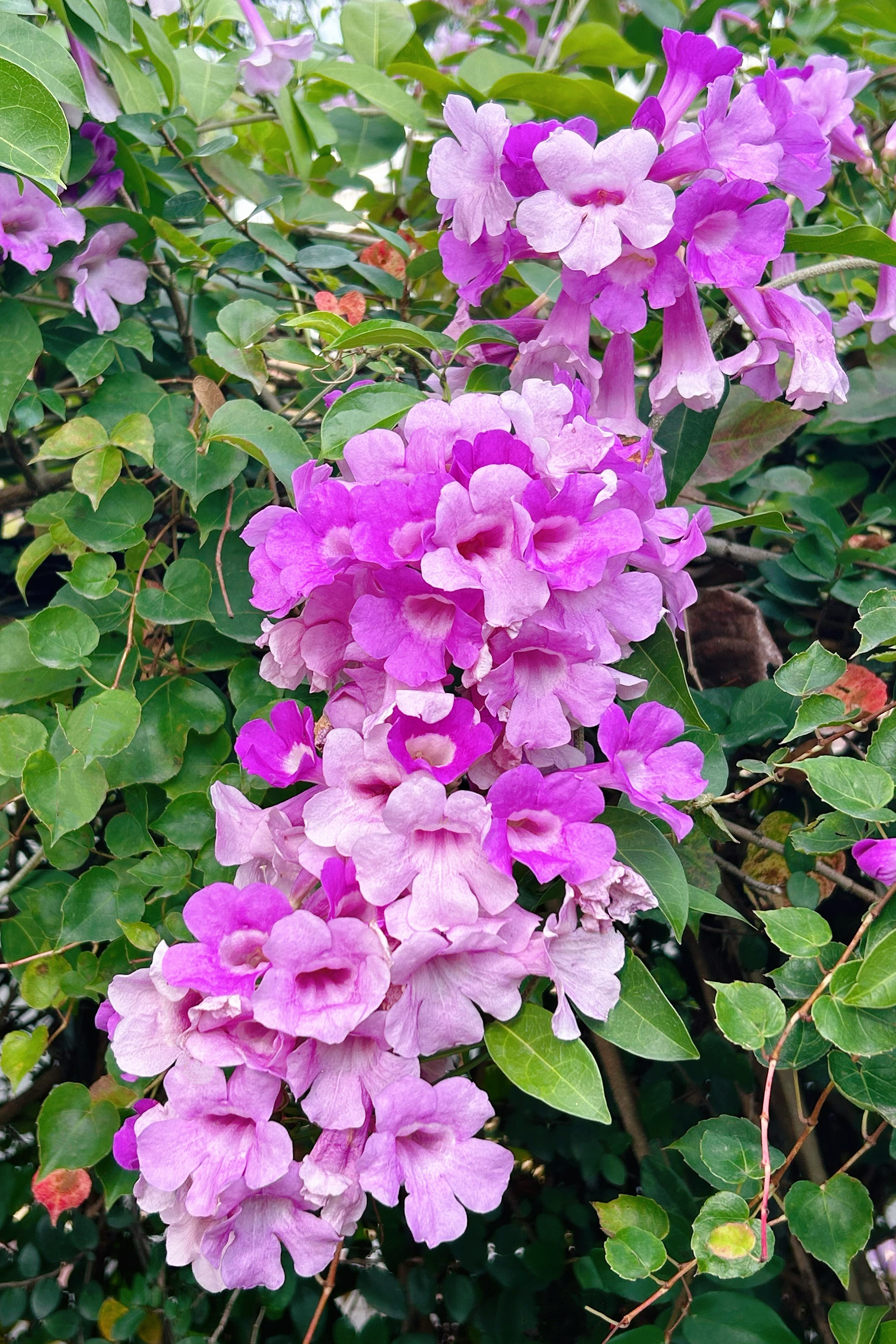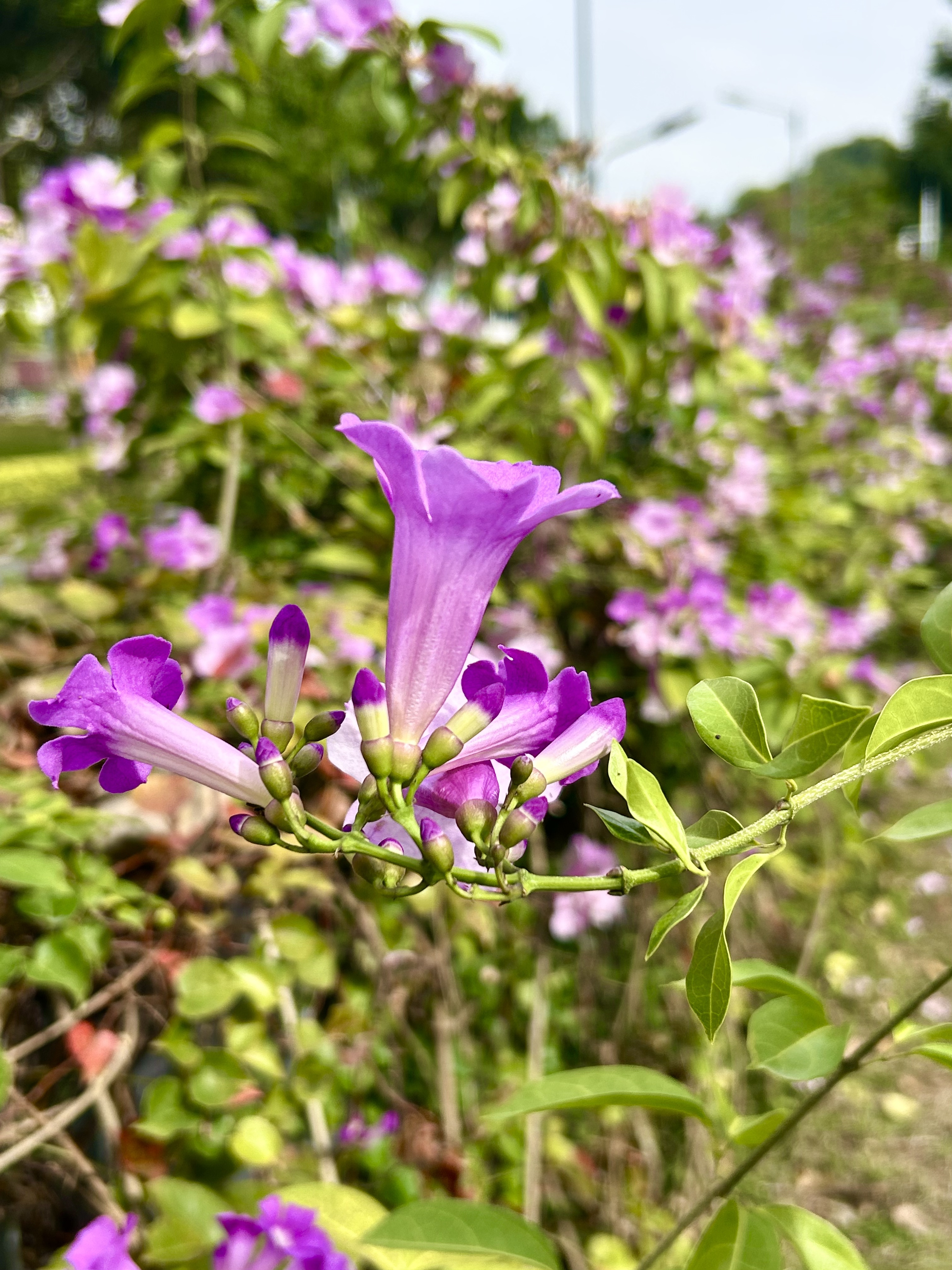 这株 “颜值与气味反差萌” 的植物——蒜香藤,隶属于紫葳科蒜香藤属常绿攀援状灌木,又名紫铃藤。