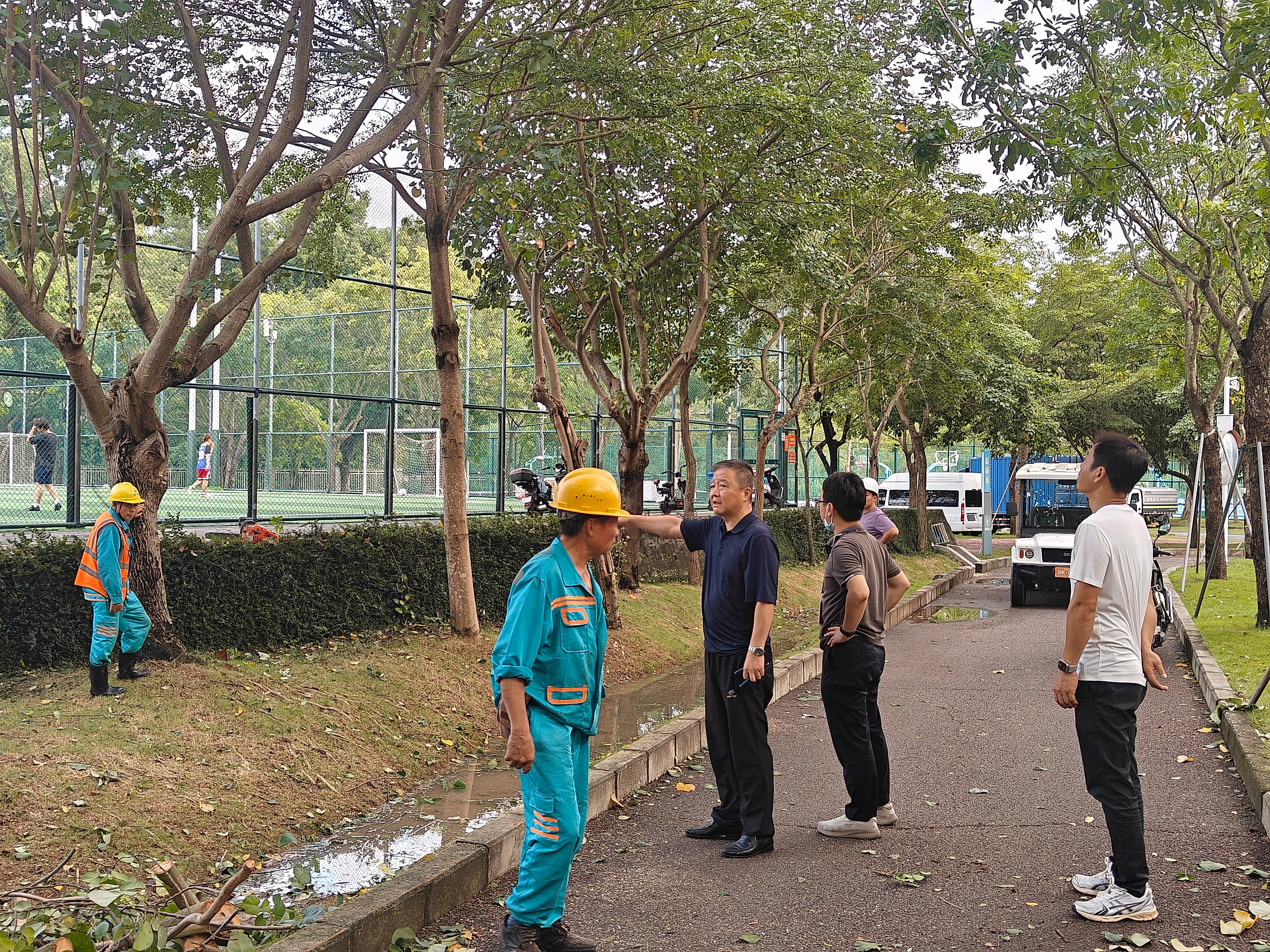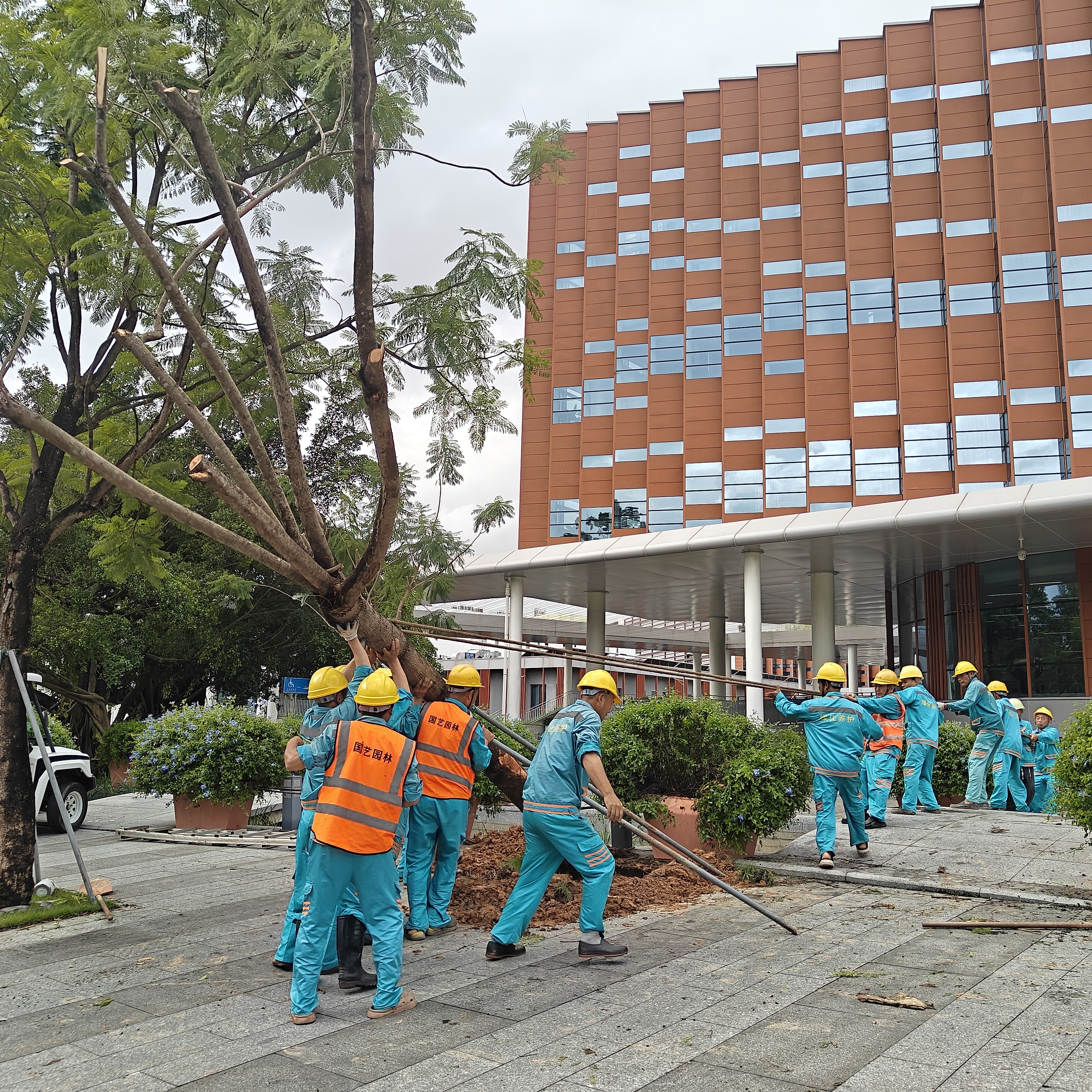 25日,总务后勤部部长刘建明带领队进行拉网式排查倒伏树木与断枝,并明确了三件 “要紧事”:先清通道路障碍,让师生出行不堵;全清树木断枝,不让残留枝干留隐患;细判弱树价值,加固危树和移植树木,更反复叮嘱工人注意安全。绿化团队迅速响应,当天就打通了主干道,恢复了通行秩序。